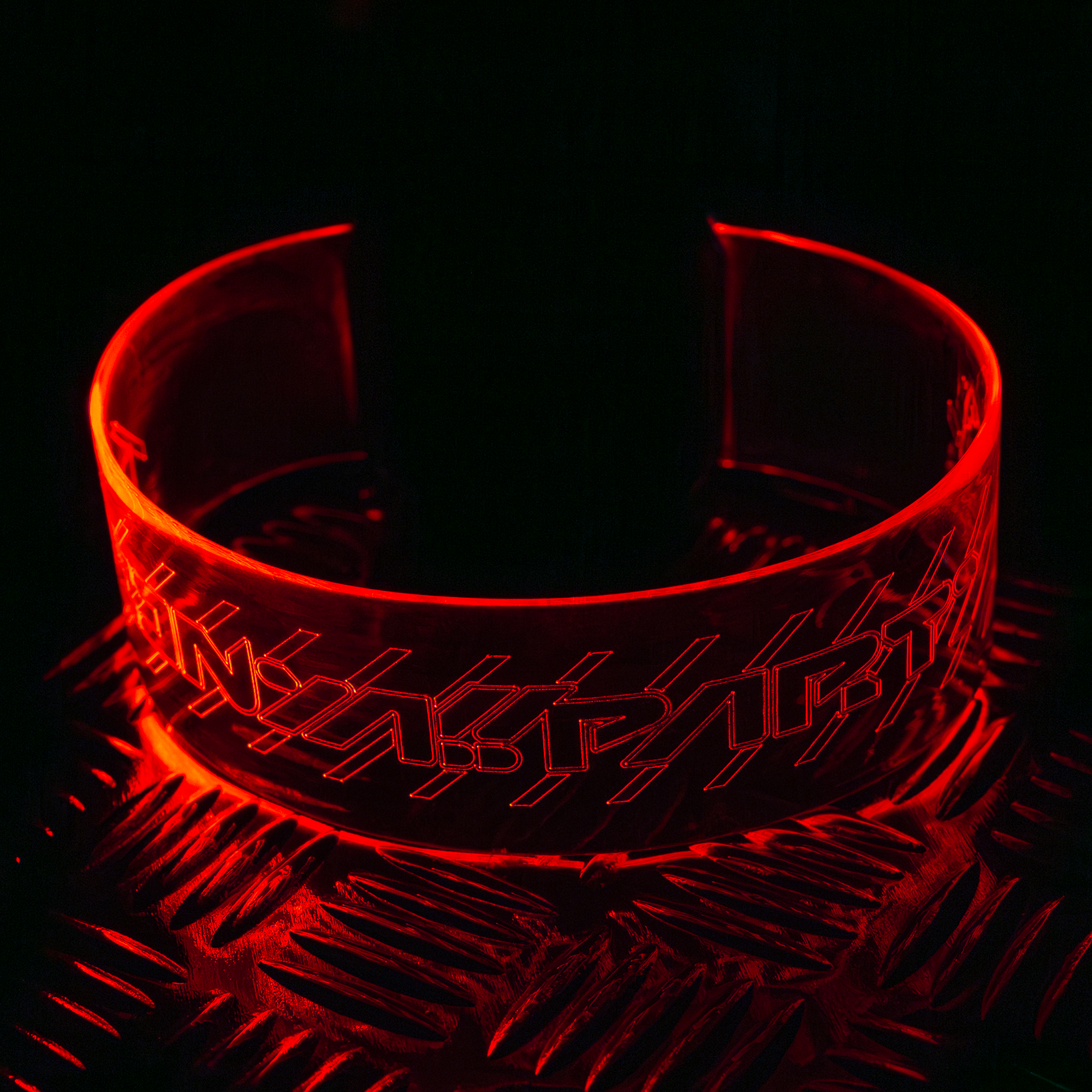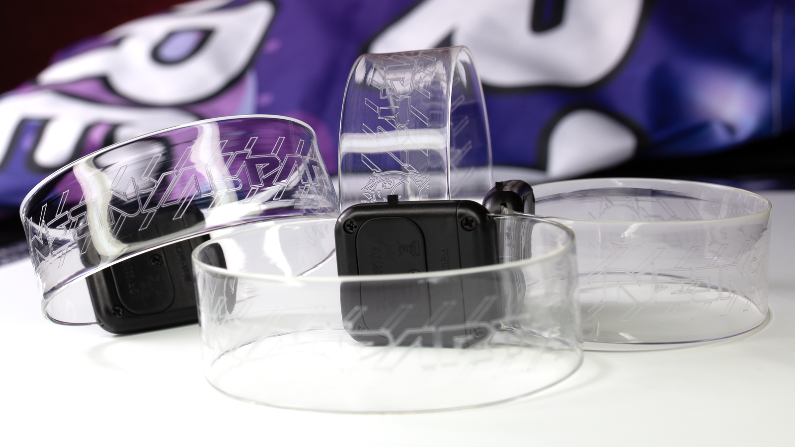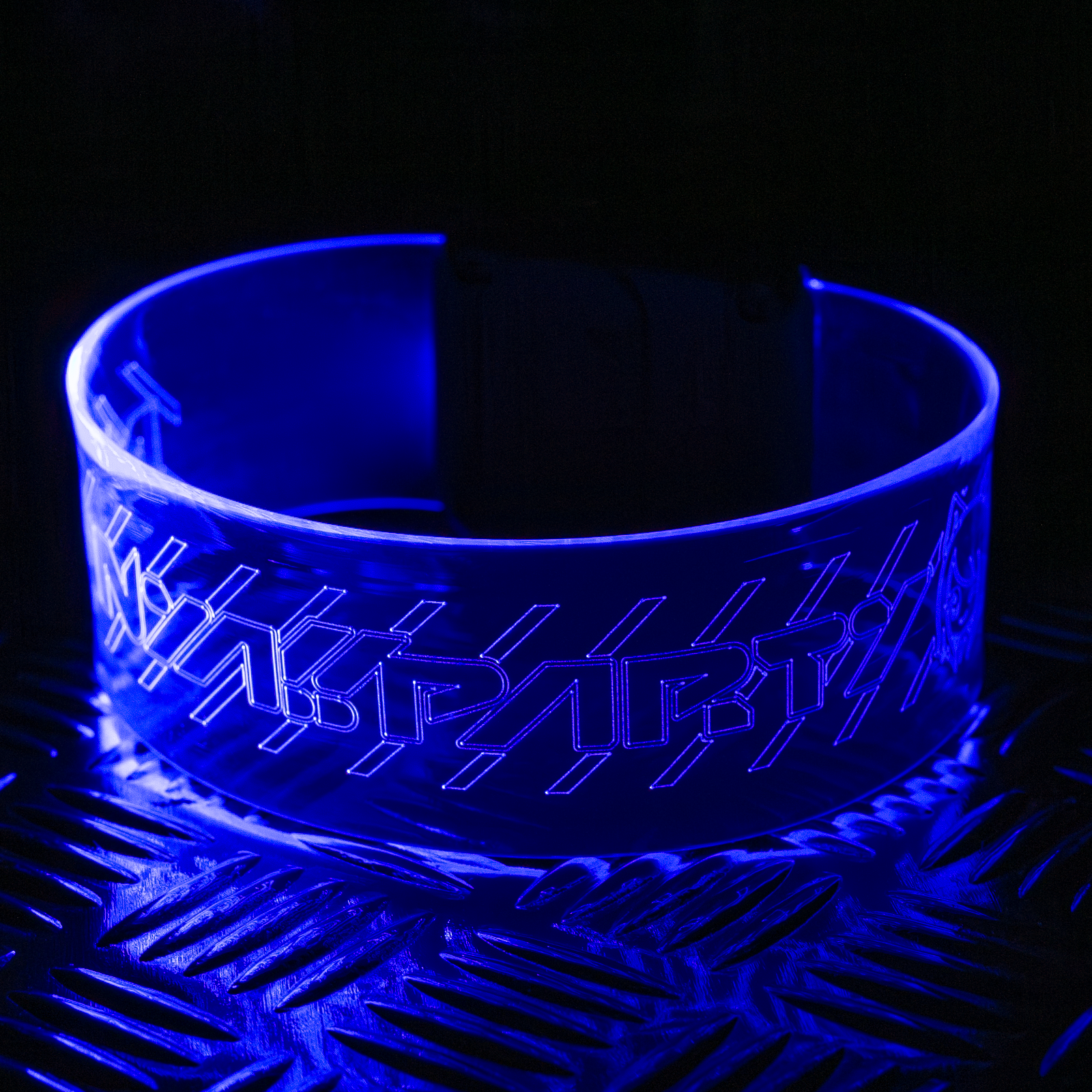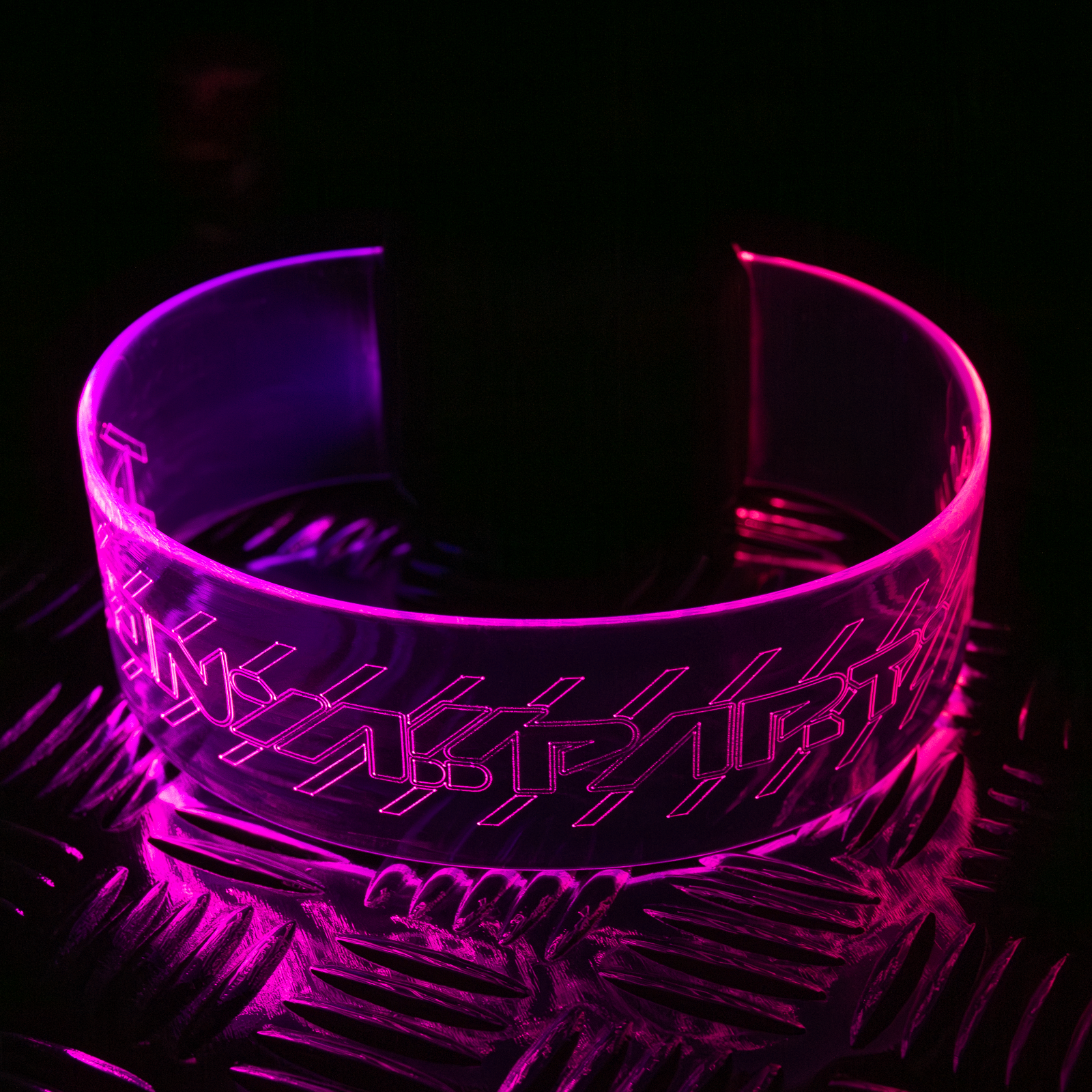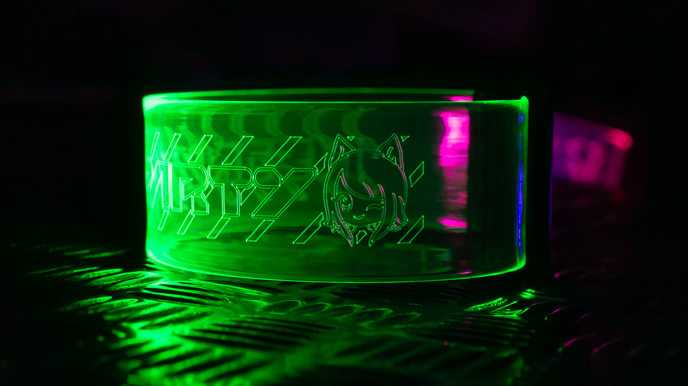 The design has been replaced with a crisp rendition of the new 2025 logo (still with awesome, techy diagonal stripes, this time sharp), still featuring the classic Nya-tan wink on the far end, and the whole thing is now sound reactive. Meaning, your wristband lights up when detecting sound!